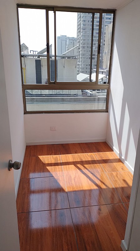El departamento se ubica en piso 18, último piso del edificio y tiene una dimensión de 40 mts.2. Su orientación es Nororiente, luminoso y soleado por las mañanas.
