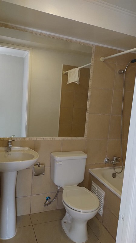 Cuenta con 1 baño, amplio y completo, incluye tina y termo de 100 lts. para agua caliente, además de habitáculo con conexión para lavadora.